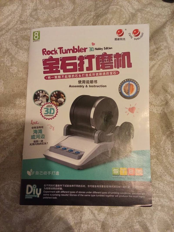 Rock tumbler machine and tumbler.